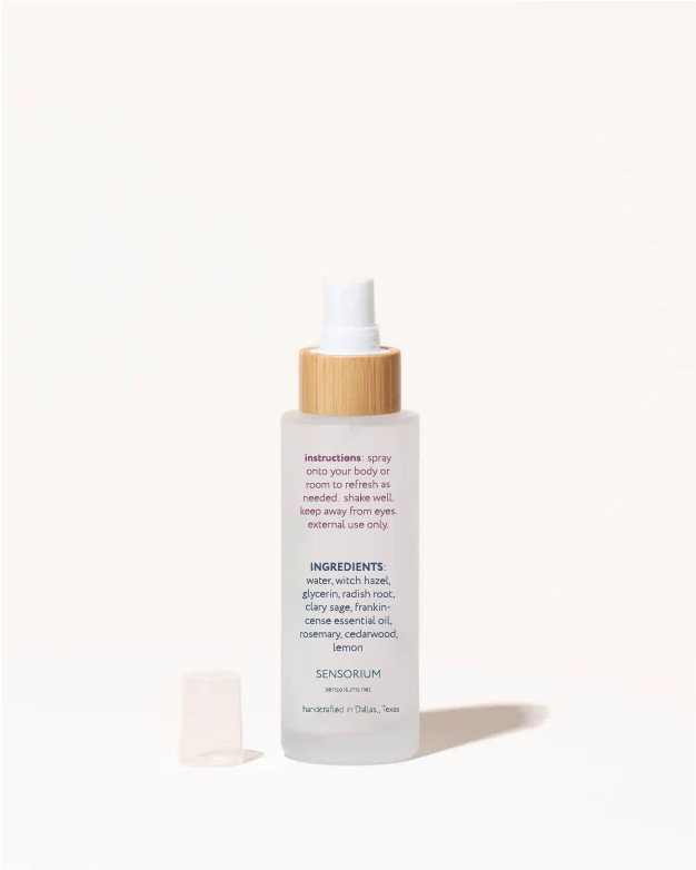 Experience the healing powers of our Sensorium Smudge Spray. Made with all-natural ingredients, this spray is designed to cleanse and purify your space while also promoting emotional well-being. Simply spray it around your room and feel the negative energy dissipate, leaving you with a sense of peace and balance. Transform your space into a sanctuary with the all-natural Sensorium Smudge Spray. Purify your surroundings and uplift your mood with each refreshing spritz. Let go of negativity and embrace inner peace with this 100% organic, non-toxic formula.